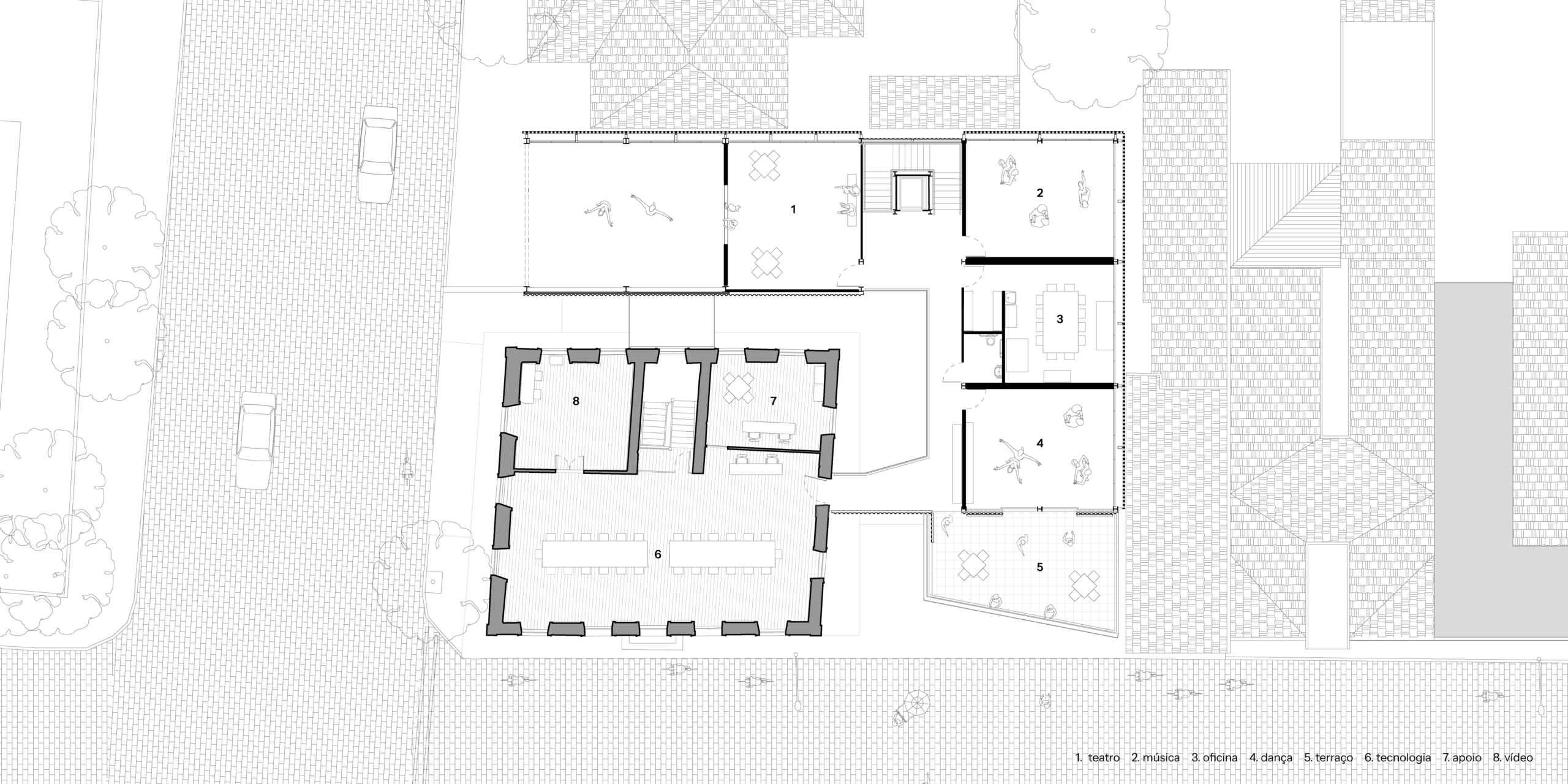 Além do restauro da antiga Cadeia, construída em alvenarias de pedra e cal, o programa contou com a construção de um anexo, capaz de abrigar as novas infraestruturas, além das áreas de acolhimento do público e um conjunto de espaços de uso específico; como o Circo-escola, a Dança, a Música e o Laboratório-Maker.